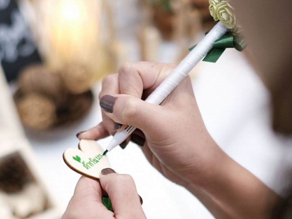 >> ในเซตจะรวมหัวใจไม้ + ขาตั้งบนโต๊ะ พร้อมใส่ข้อความด้านหน้า