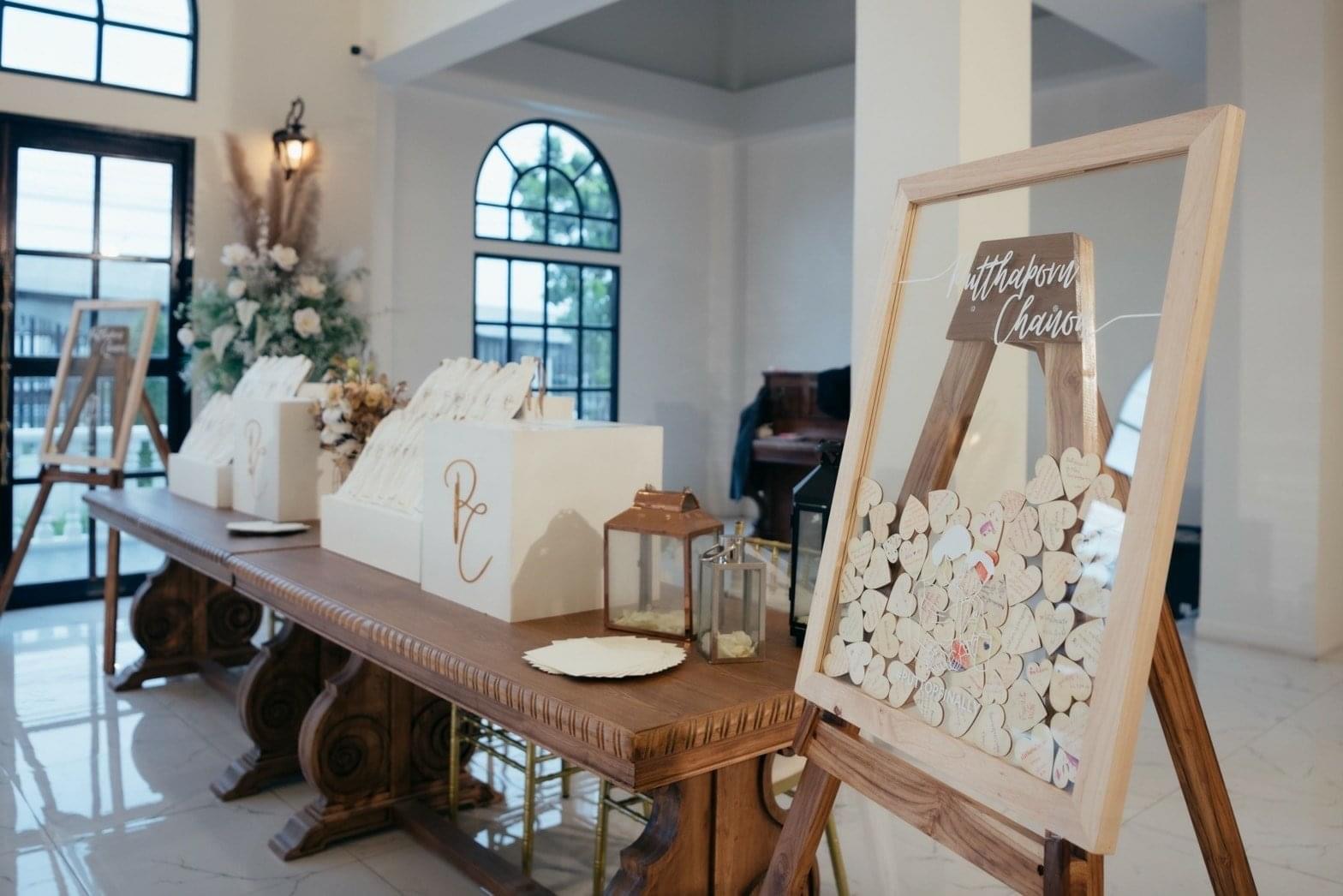 ด้านหน้ากรอบไม้สามารถออกแบบใส่โลโก้บ่าว-สาวให้เข้ากับธีมงาน หรือจะใส่ข้อความต้อนรับเพิ่มเข้าไป ก็สามารถประยุกต์ใช้เป็น Welcome Sign ได้ด้วยค่ะ นอกจากเหมาะสำหรับใช้เป็นพร็อพเก๋ๆในงานแต่งงานแล้ว Heart Drop Box ยังนิยมสำหรับให้เป็นของขวัญงานแต่งงาน ของขวัญวันเกิด หรือของขวัญงานเกษียณอีกด้วยค่ะ