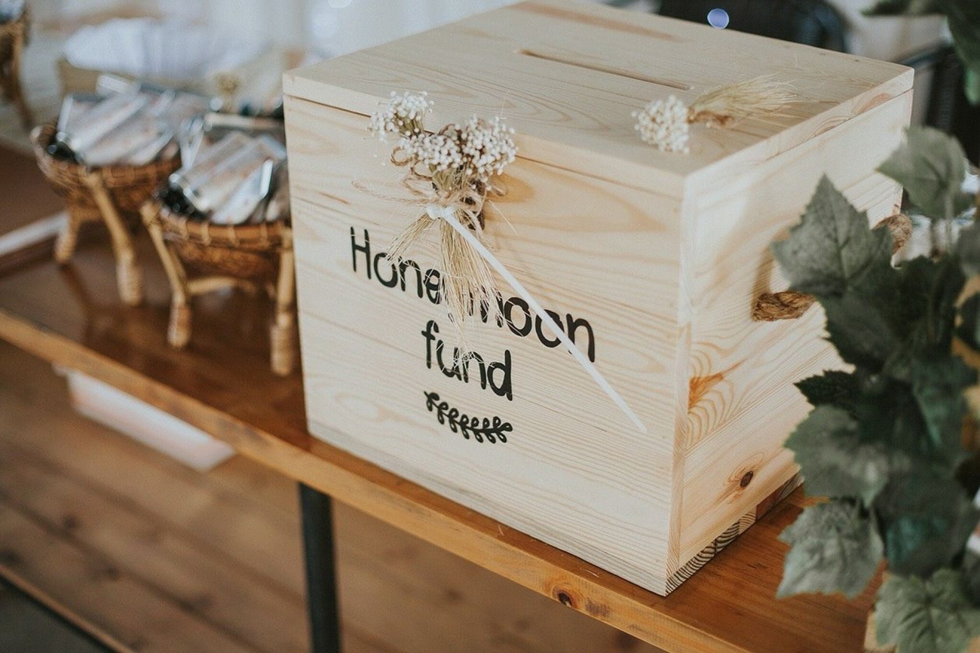 Wooden Money Box กล่องไม้รับซองงานแต่ง สวยมีสไตล์แบบ Minimal Rustic มีความแข็งแรงทนทานสูง จุเยอะมากถึง 500ซอง!! สำหรับงานสเกลใหญ่