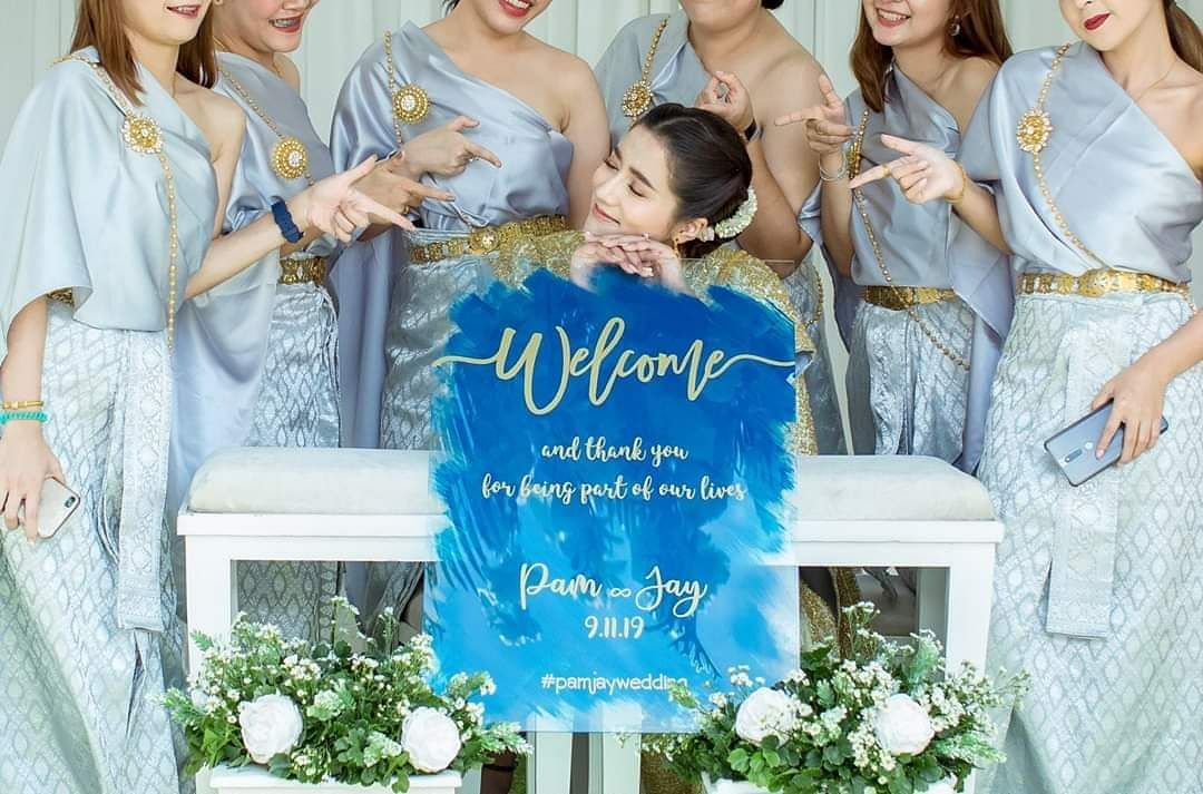 Acrylic Welcome Sign ป้ายต้อนรับหน้างานแบบอะคริลิค เหมาะกับงานแต่งงานแบบ Modern Wedding หรืองานแต่งงานแบบ Outdoor Wedding ที่ต้องการให้บรรยากาศงานมีความแปลกใหม่ไม่จำเจ ให้ความรู้สึกเรียบหรูแต่ดูมีสไตล์สุดๆไปเลยค่ะ